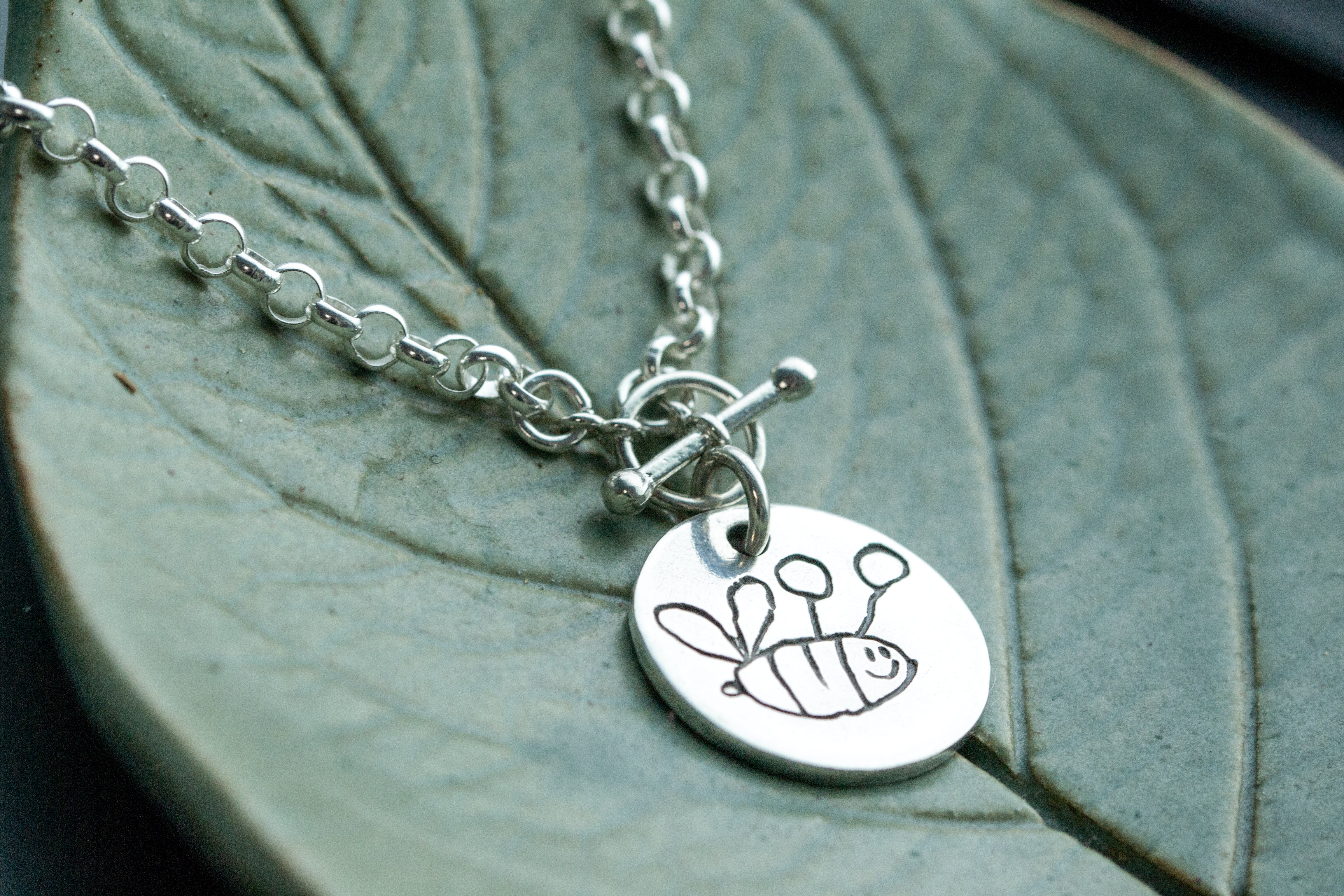 Do you have those "mini masterpieces" just gathering dust or tucked away in a scrapbook? Why not transform your favourite drawing into a stunning piece of personalised jewellery? Simply take a photo of the artwork and upload it during the ordering process. We'll shrink the image and stamp it onto a sterling silver pendant in the shape of your choice. You can even have the artist's name and age engraved on the piece—this is included in the price! Complete your unique drawing jewellery with one of our Italian-made, chunky sterling silver belcher chains, available in three size options. For the perfect finishing touch, you also have the option to add a birthstone of your choosing. Perfect!