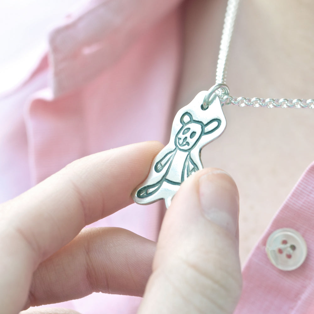A classy way to showcase a "mini masterpiece." Turn your favourite drawing into a stunning piece of personalised jewellery! Simply take a photo of the artwork and upload it during the ordering process. We'll carefully shrink the image and stamp it onto a sterling silver pendant in the shape of your choice. Want to add a special touch? You can have the artist's name and age engraved on the piece—this feature is included in the price! Complete your refined drawing jewellery with one of our Italian-made sterling silver fine belcher chains, available in five size options. For the perfect finishing touch, you can also choose to include a birthstone of your choice. Perfect!