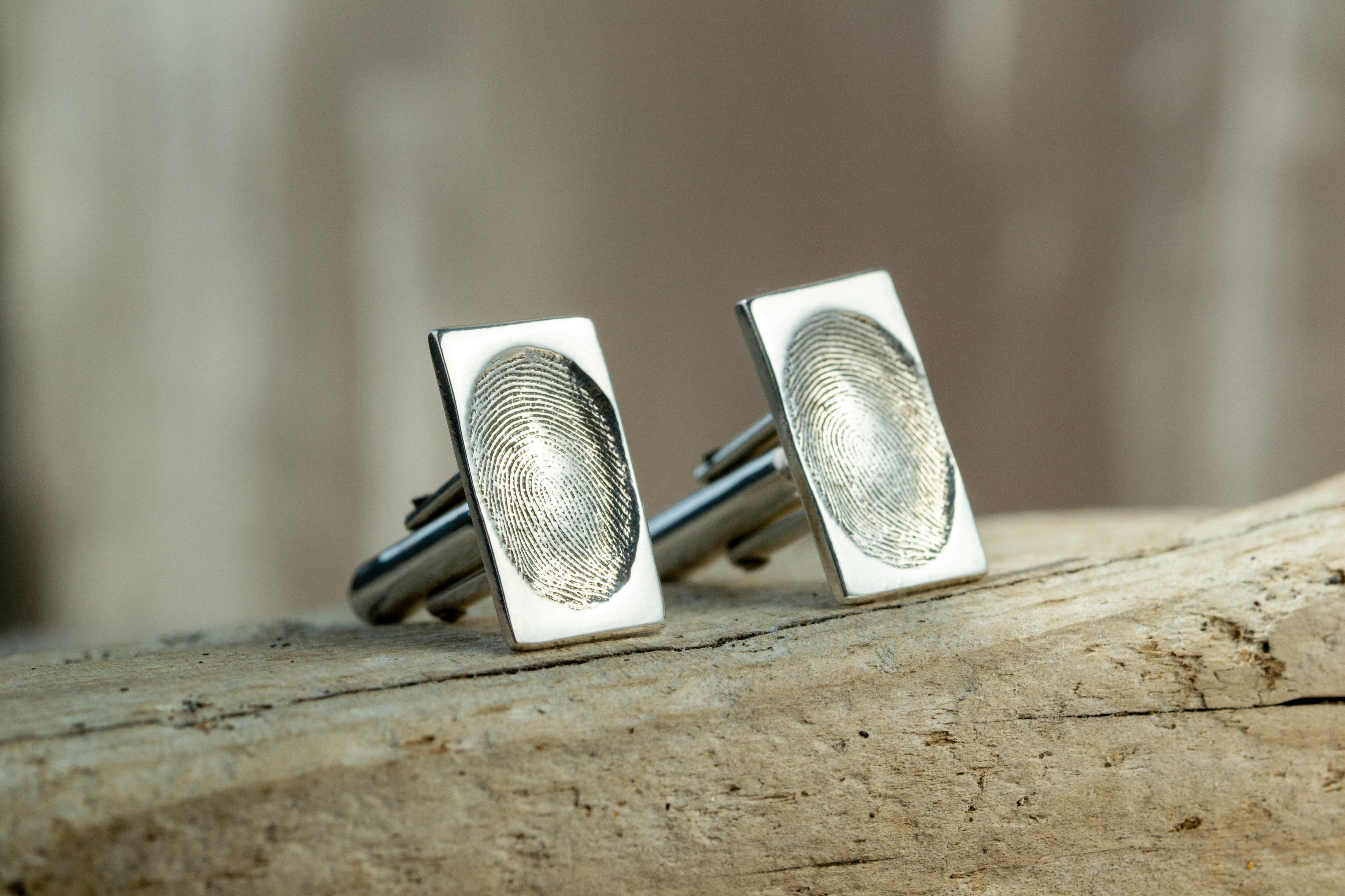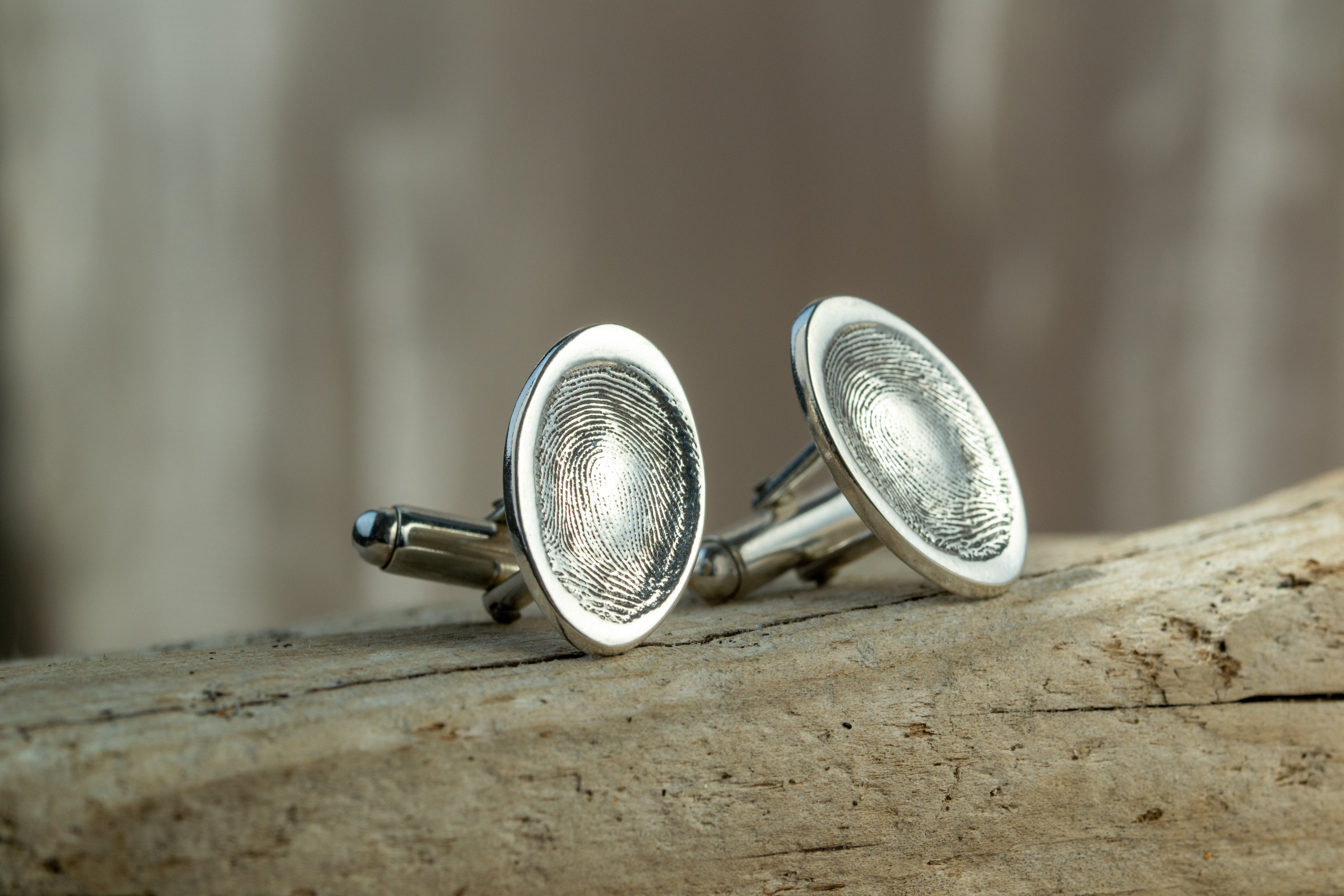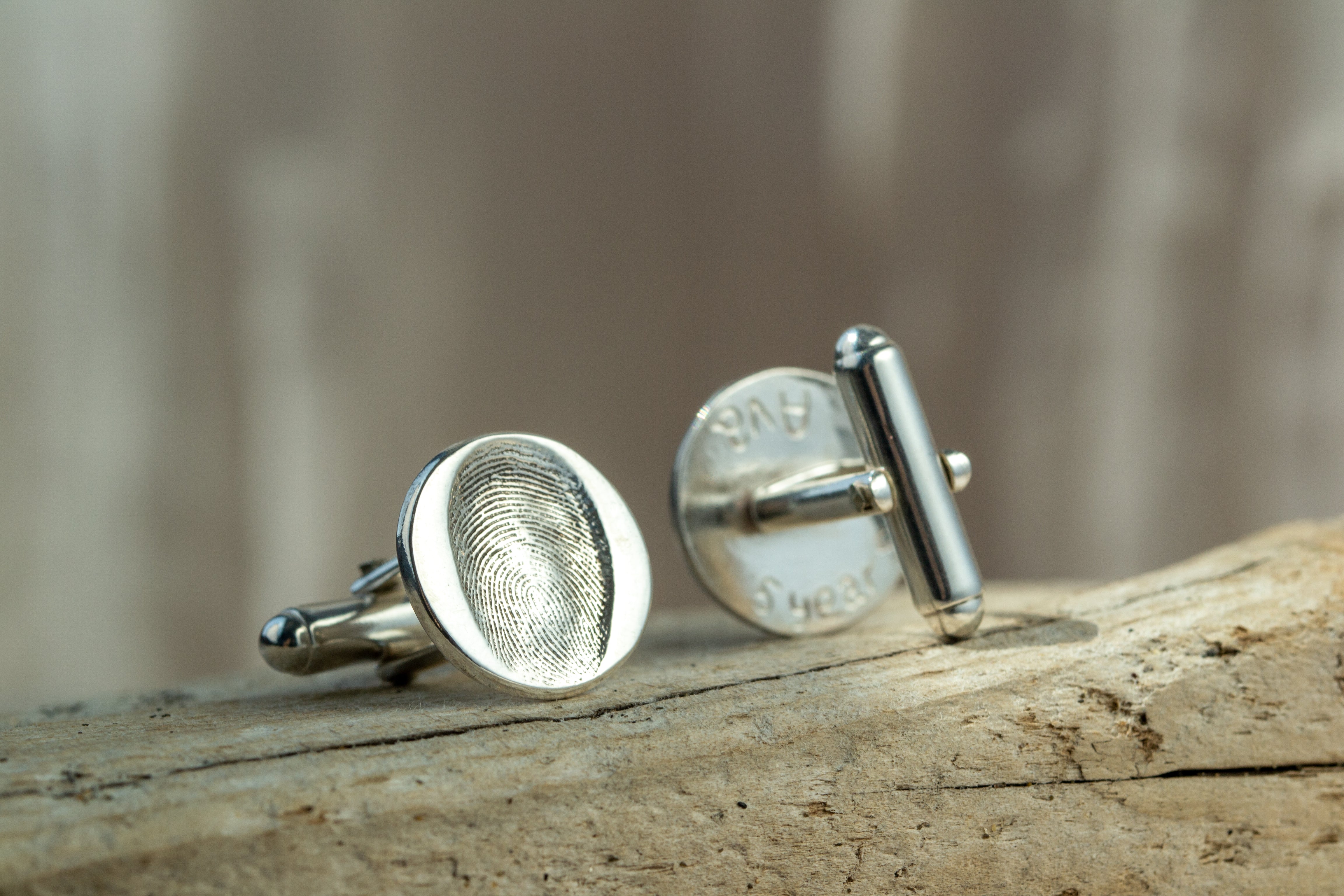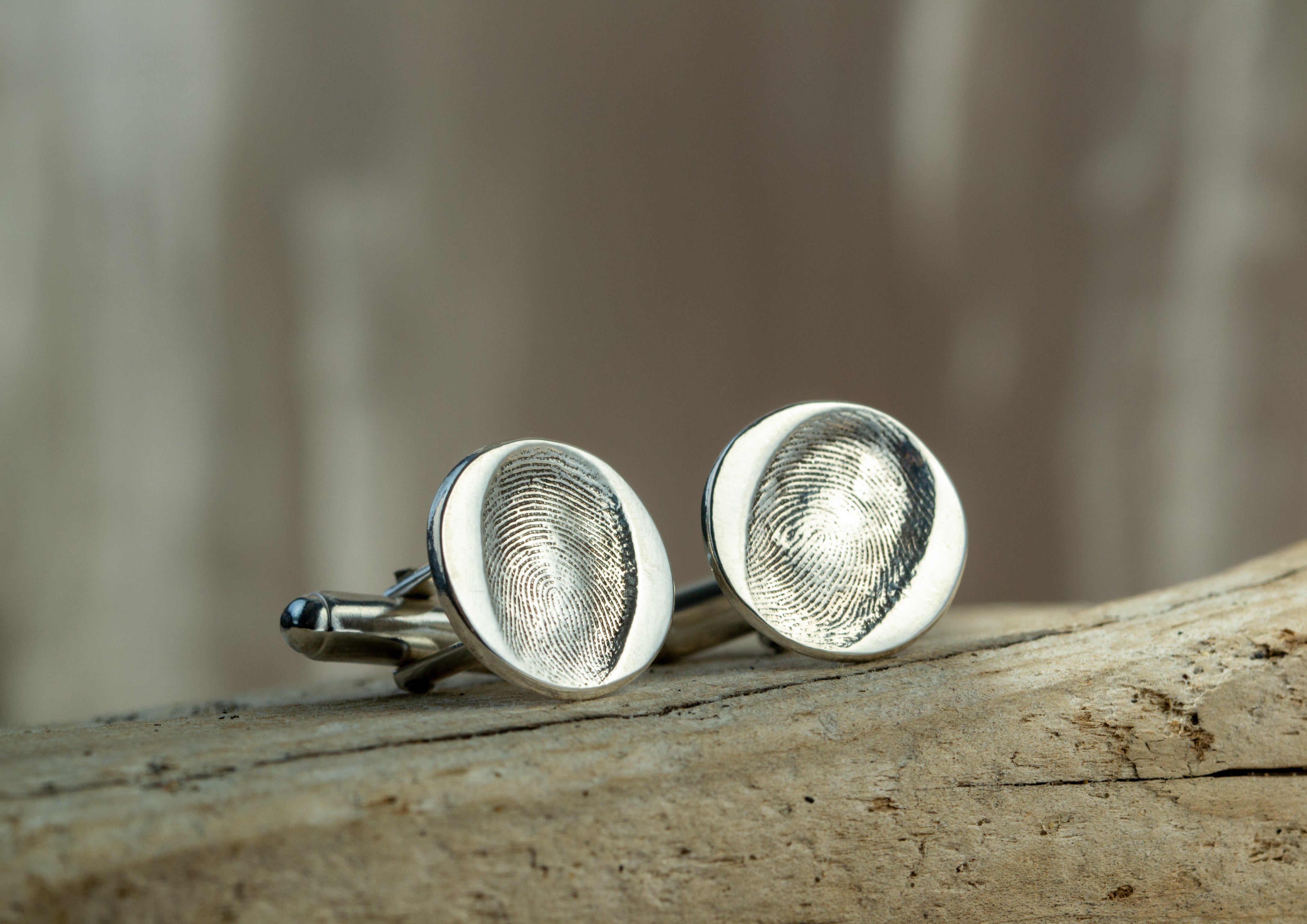 These elegant cufflinks are a perfect showcase for your unique fingerprint jewellery, available in a variety of shapes. Capture your baby's actual fingerprint in sterling silver—or an adult's—for a meaningful gift, ideal for weddings or special occasions. Visit a local jeweller to have the impression made directly onto the cufflinks, or use our moulding compound kit to take your own print and send it back to us.