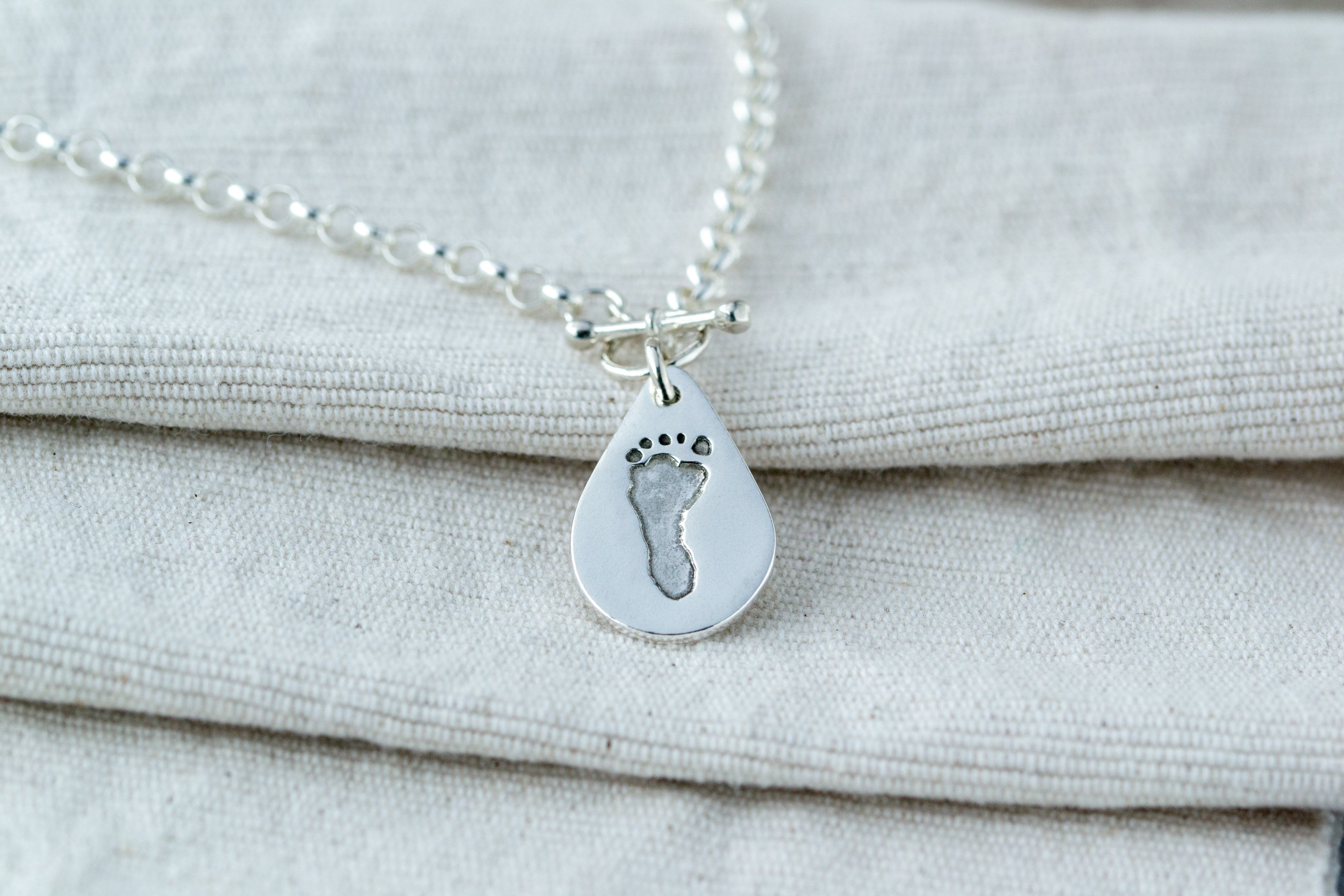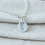 Capture the moment from the day your baby is born with our sterling silver pendant, featuring a hand or footprint along with a hand-engraved name and age. This pendant is a meaningful piece of hand and footprint jewellery and a cherished addition to your collection. Upload a clear picture of an existing print or clay cast with your order, or use one of our inkless hand & footprint kits to create an original print. Choose from a variety of pendant shapes and complete your piece with one of our Italian-made, chunky sterling silver belcher chains, available in three sizes. You can also include a birthstone for a personalised touch. Perfect!
