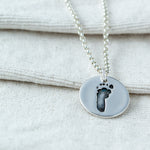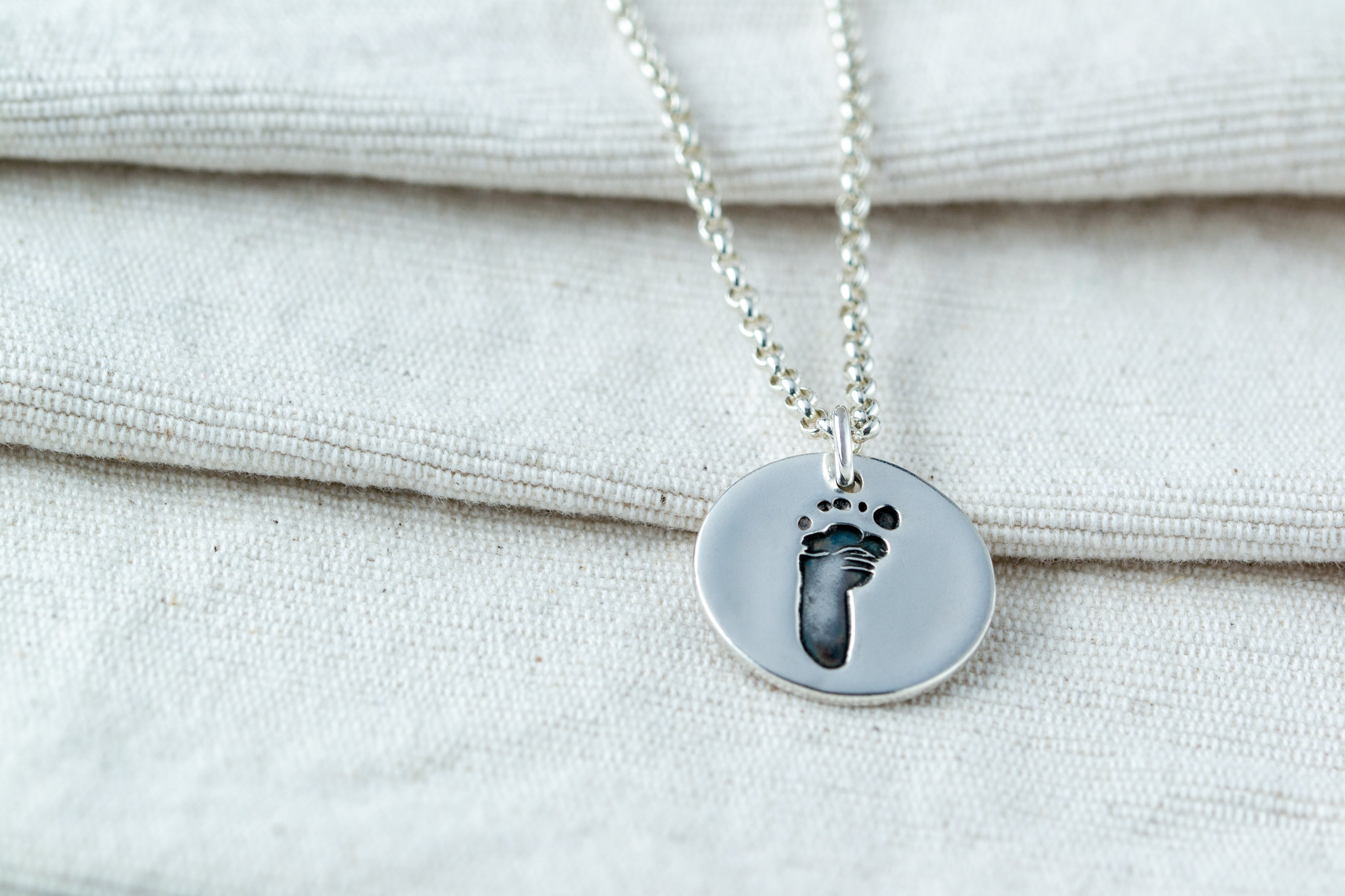 A sophisticated way to celebrate those little high fives and tiny kickers, our sterling silver pendant commemorates the day your baby is born with a hand or footprint and a hand-engraved name and age. This piece is a stunning example of hand and footprint jewellery and a beautiful addition to any collection. Simply upload a clear photo of an existing print or clay cast with your order, or use one of our inkless hand & footprint kits to create a new print. Choose from several pendant shapes and complete your necklace with one of our Italian-made, refined sterling silver fine belcher chains, available in five sizes. You can also add a birthstone for an extra personal touch.