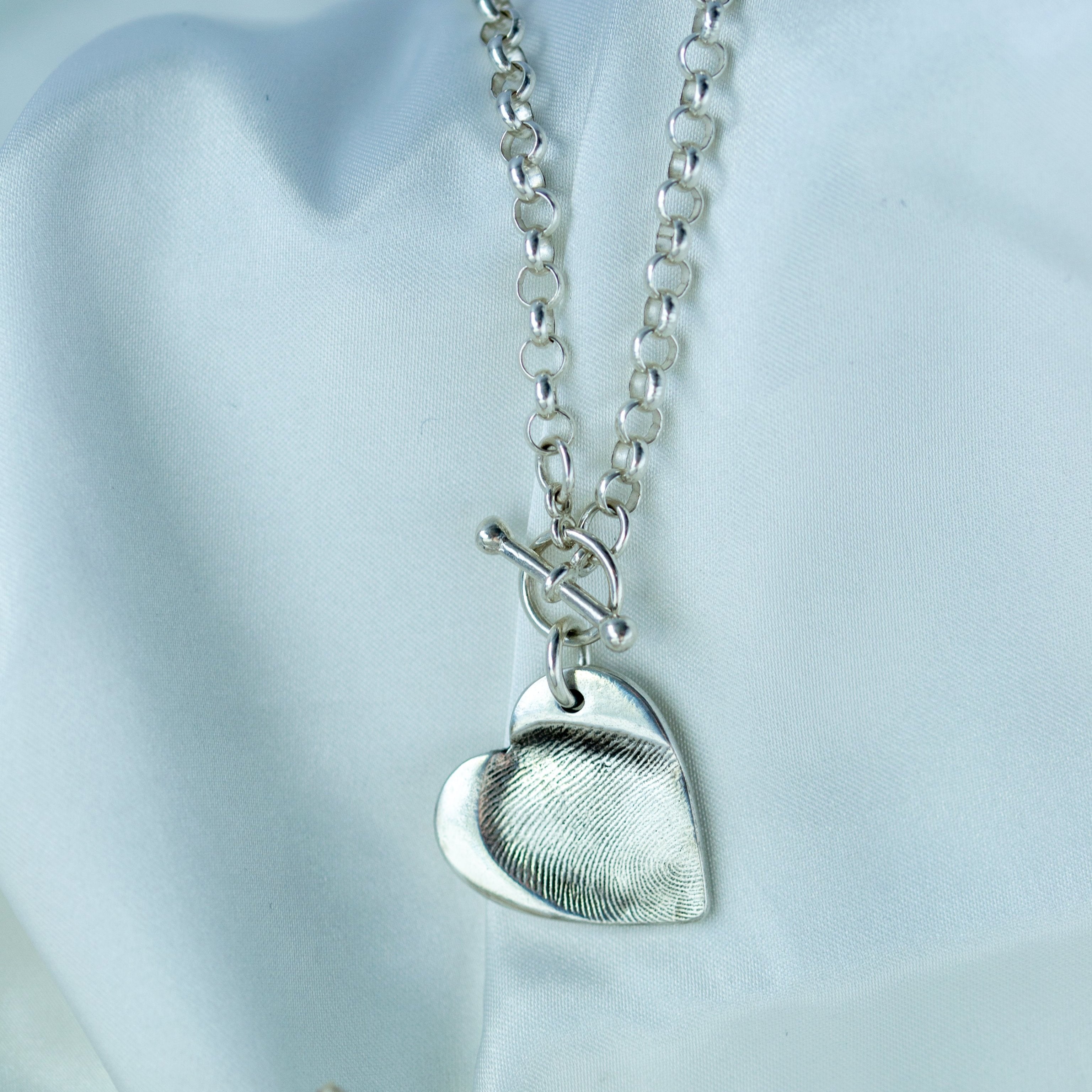 Capture a loved one’s actual fingerprint in sterling silver with our elegant memorial fingerprint jewellery—ideal for honoring cherished memories. Have the impression made by a local jeweller or use our moulding kit to create the perfect pendant. Choose from various shapes, with a hand-engraved name and age included. Complete your piece with an Italian-made, chunky sterling silver belcher chain, available in three sizes.